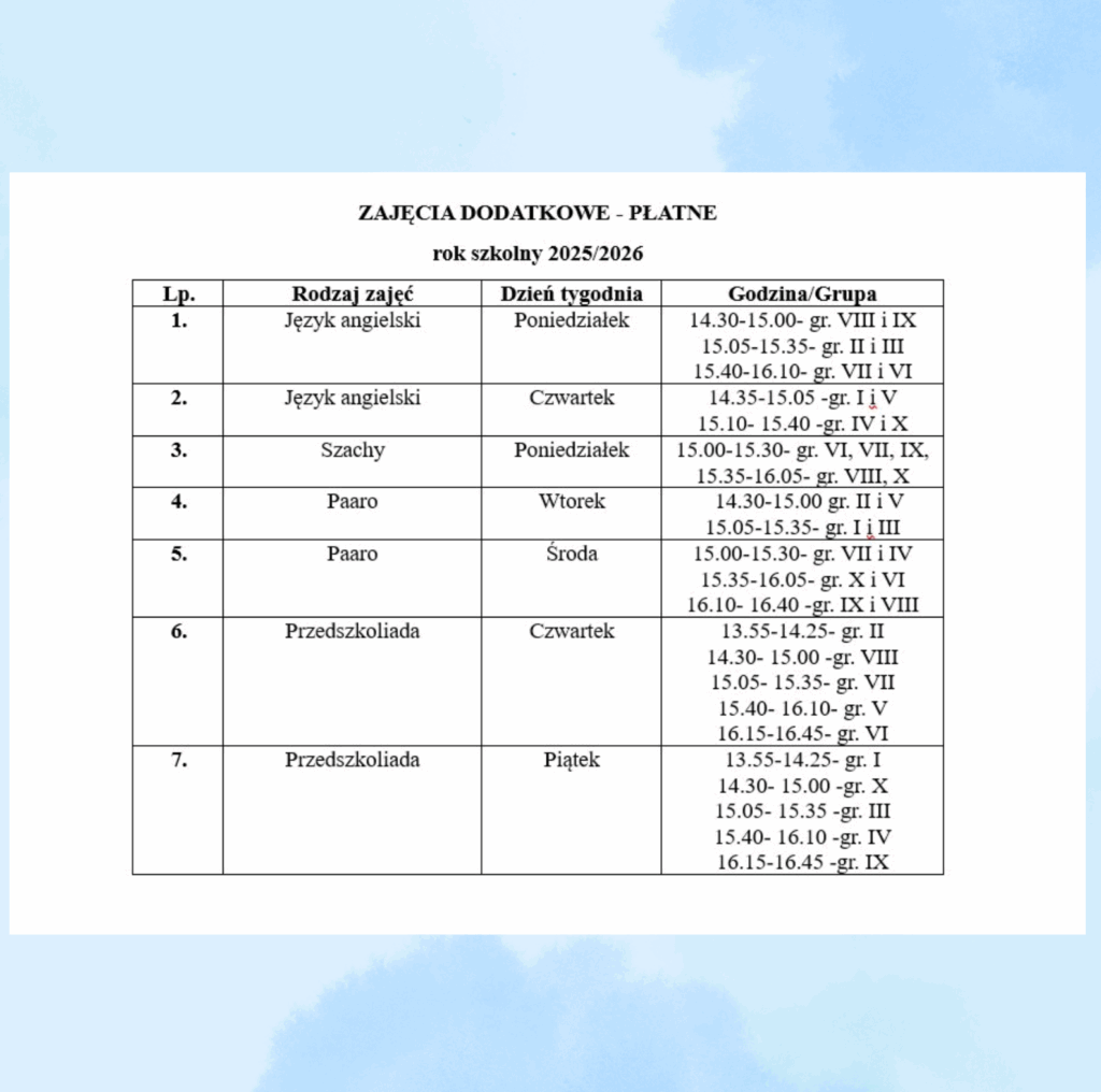 Oferta płatnych zajęć dodatkowych
